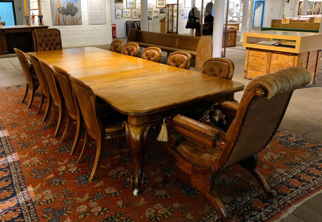 And one final story. In a compelling paper, Shortt and Izak discuss how workplace wear and tear, scars, scuffs and stains can act as ‘material autobiographical archives’ concealing ‘memory anchors’ or ‘time marks’ (Shortt and Izak, 2021). We can only conjecture, but did Titus Salt ever notice the dulling of the varnish or the scratches in the surface at the head of the table, and reflect how this erosion by paper and frock coat sleeve embodied many years of toil and consequently his own history and heritage? Or did he glance at a particular stain and recall the event that occasioned it — maybe, a cup of tea carelessly put down as a discussion on tariffs and imports grew in heat and fervour?